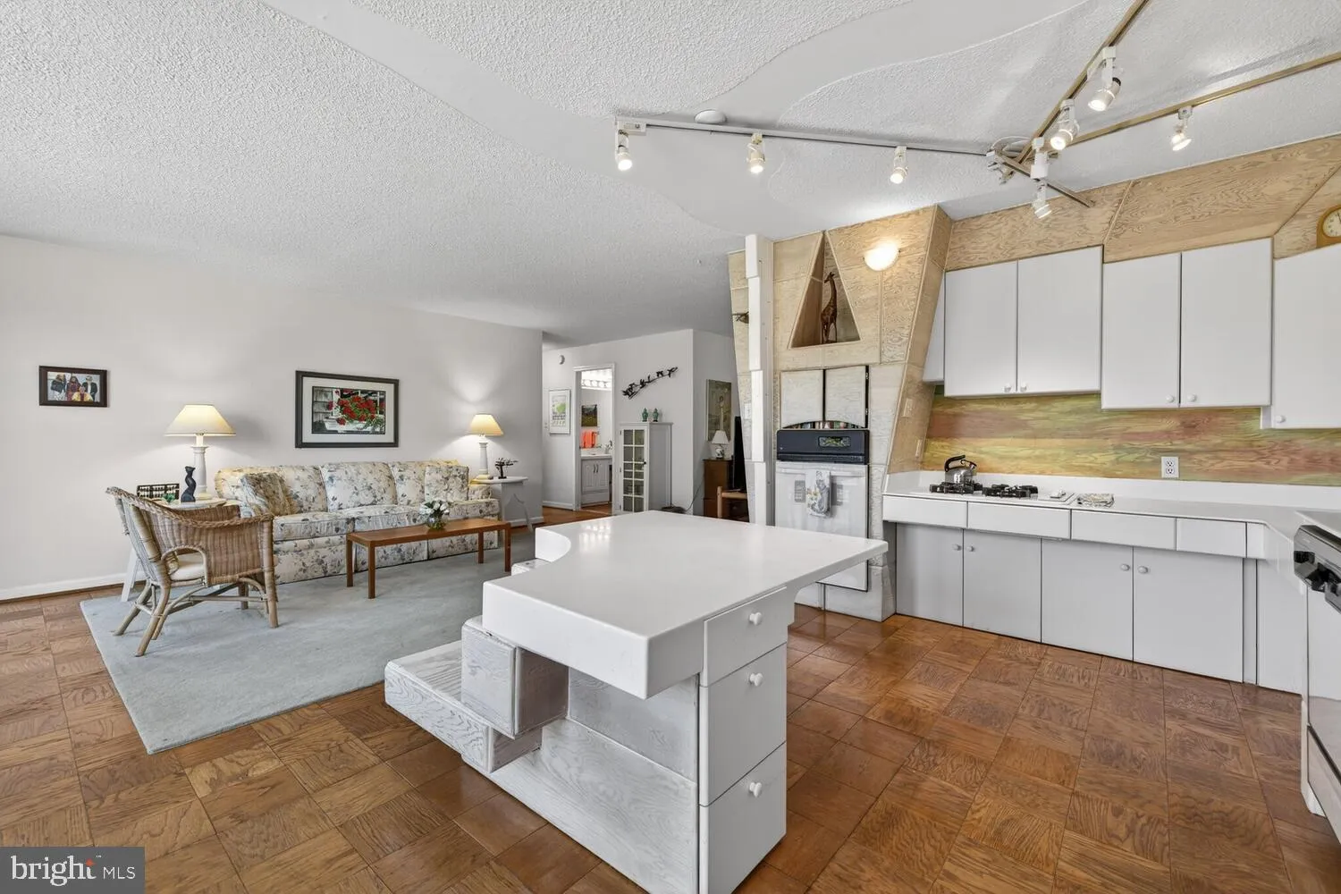 The kitchen offers excellent workspace and storage, with varied and lowered counter heights, open clearance below select areas, and thoughtfully positioned appliances to enhance functionality and ease of use.