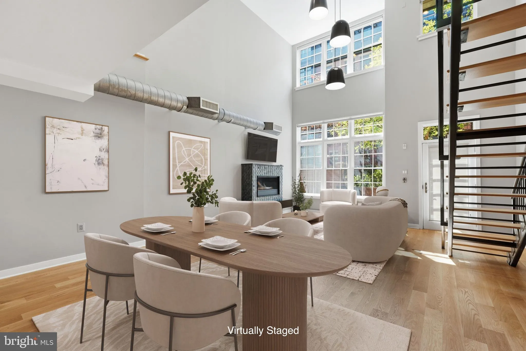 As you head upstairs, the floating staircase continues the home’s architectural language. A thoughtfully positioned loft adds flexibility, offering an ideal setting for an office, reading lounge, or quiet retreat that feels connected yet distinct from the main living spaces. This level also benefits from a secondary entrance off the secure building lobby, providing convenient access to mail and package delivery and a more private area to greet unknown visitors or contractors.