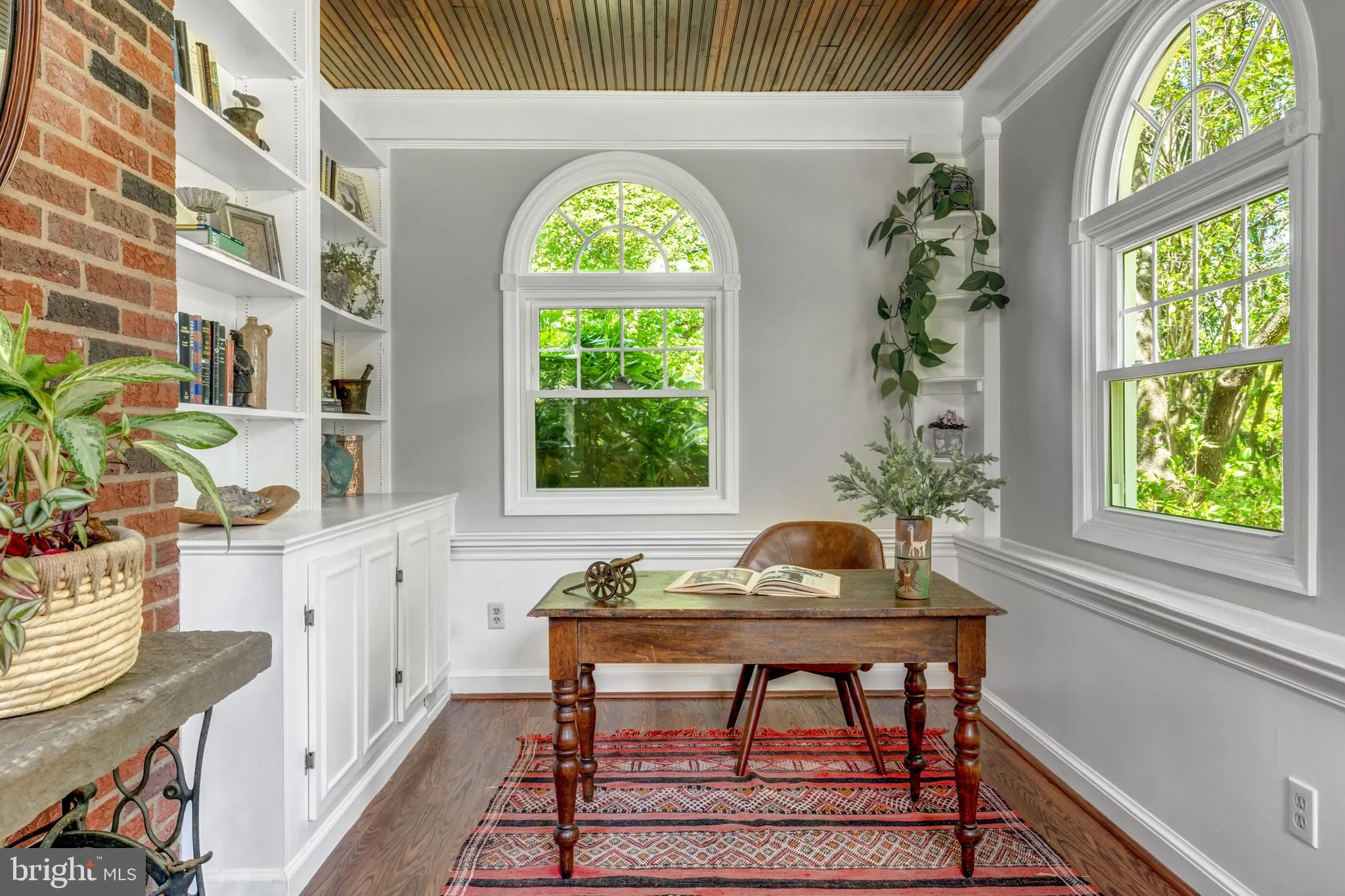 Inside, the home is packed with AUTHENTIC CHARM. You will love the timeless details, from the ORIGINAL CRYSTAL DOORKNOBS on the 6-PANEL WOOD DOORS and classic archway to the inviting, usable WOOD-BURNING FIREPLACES framed by GORGEOUS WOOD MANTLES, and the many BUILT-INS for your favorite books and keepsakes. The kitchen is ready for everyday life and entertaining, and the sweet SUNROOM is the ideal spot to enjoy a morning coffee while looking out at the gardens. There is also PLENTY OF STORAGE SPACE tucked throughout the home to keep things organized.