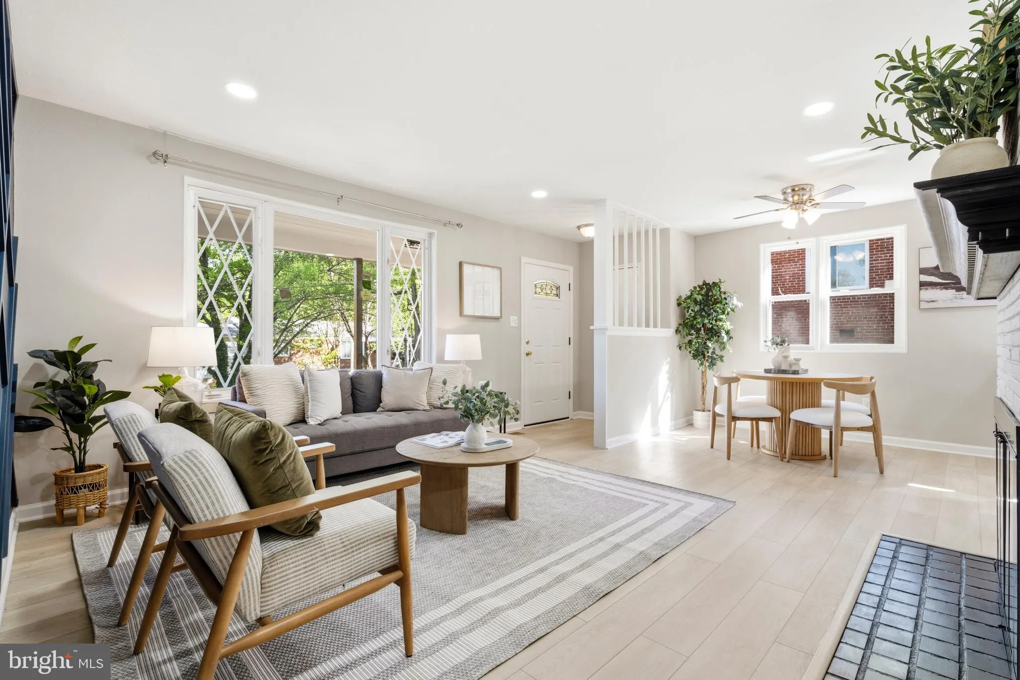 Charming all-brick rambler featuring 5 bedrooms and 2 full baths, filled with natural light and showcasing beautiful wood floors throughout. The bright, airy living room offers a panoramic window, cozy fireplace with dark mantel, brick accent, and a stylish feature wall. The remodeled kitchen is equipped with stainl...