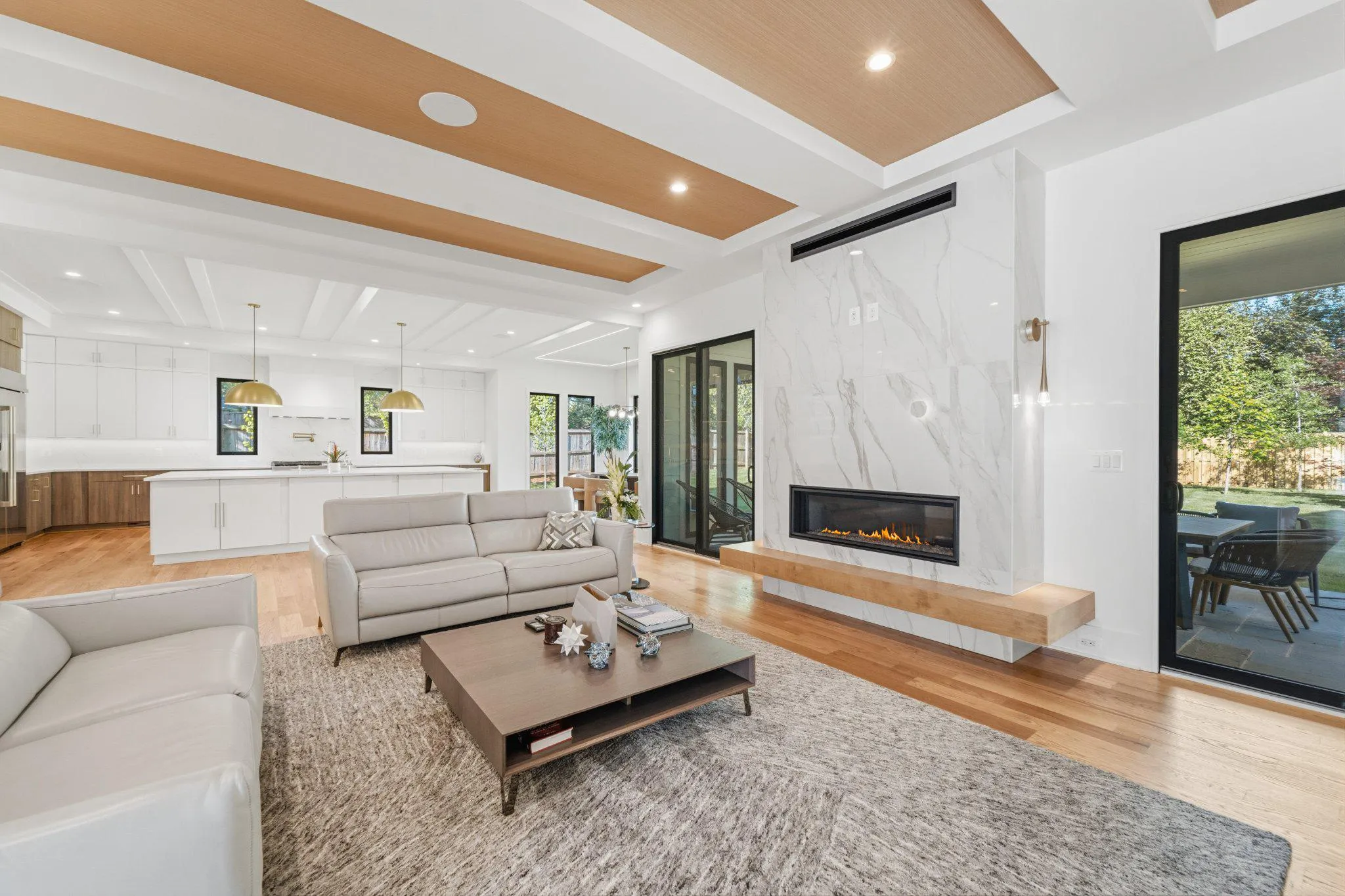 Upstairs, discover a flexible loft space and four oversized bedrooms, each with walk-in closets and en-suite baths. The primary suite is a true retreat, featuring soaring 20-foot vaulted ceilings, a double-sided gas fireplace, a spa-like bath with a steam shower, and custom his-and-hers walk-in closets. The second floor also includes a dedicated laundry room.