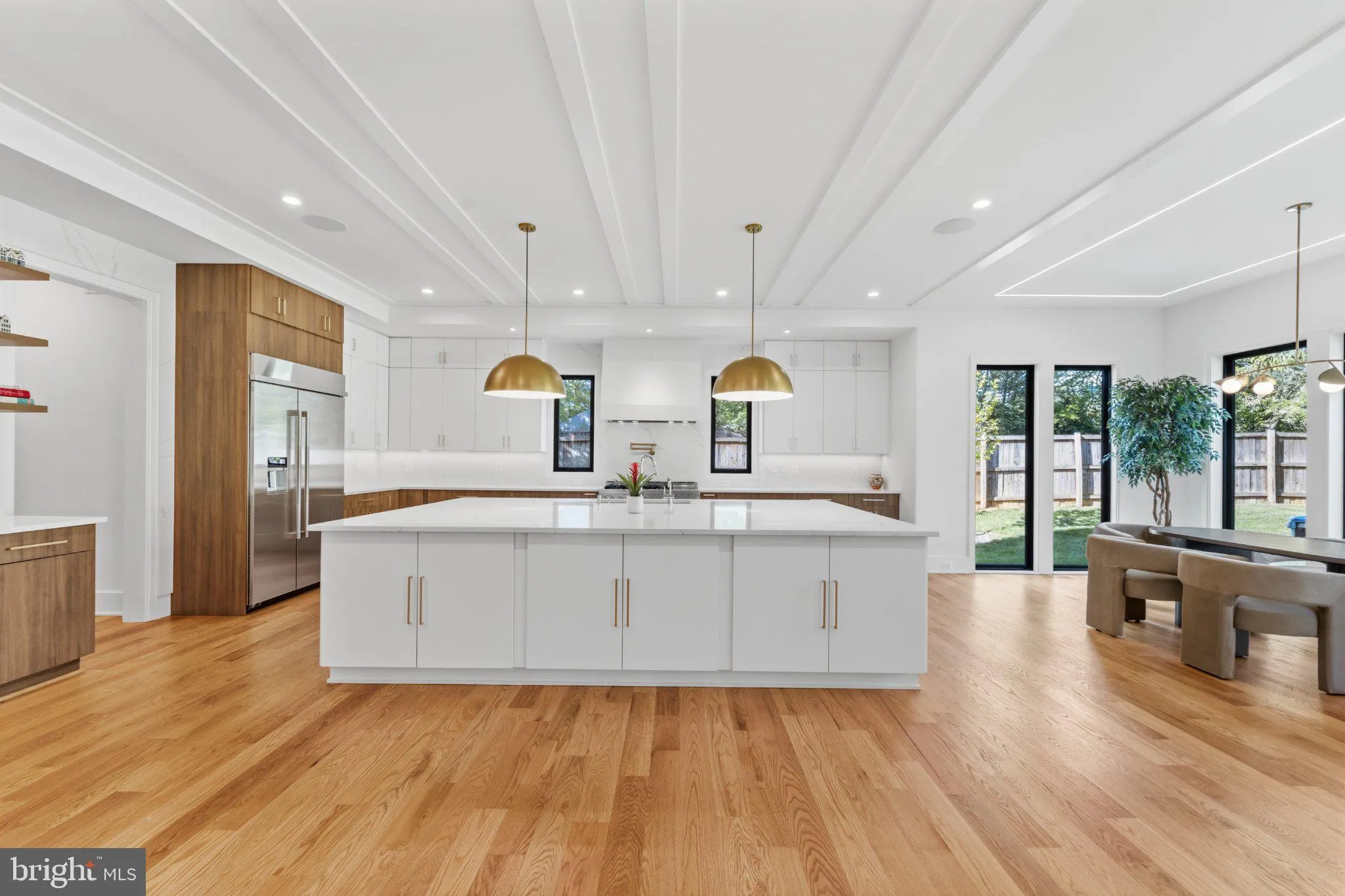 The heart of this home is the gourmet kitchen, a culinary dream with an oversized island, premium appliances, and a separate prep kitchen —ideal for hosting anything from intimate dinners to lively gatherings. Recent upgrades include cutting-edge 2026 Miele appliances: a built-in smart coffee/espresso machine, and a steam combi oven. Bar areas on the main and lower levels are equipped with dishwashers. An instant hot water system by Kitchen-Aid adds even more convenience. The main level’s 10-foot ceilings, intricate ceiling designs, and rich Red Oak flooring create an inviting, open ambiance, while features like a private bedroom suite, cozy breakfast nook, and family room opening to a covered flagstone patio seamlessly blend indoor and outdoor living. There’s even an elevator shaft in place for future possibilities.