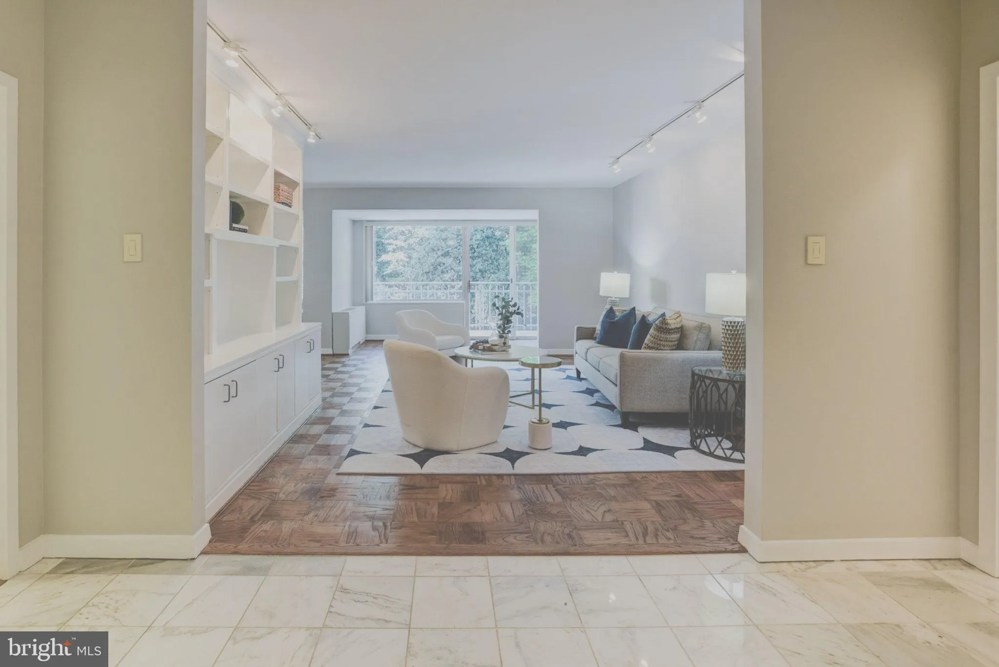 Spacious 1 BR, 1.5 BA corner condo in ” Best Addresses” Cathedral West. Airy DR with built-ins and windows on two sides, which could become den or second BR. Updated kitchen with granite countertops and SS appliances. Large LR with built-in bookcase, front window, and slider to 27′ balcony. Foyer features PR, marble floor, and floor-to-ceiling closet with shelving. BR is roomy and flexible, with two front windows, walk-in closet, dressing area with two additional closets leading to updated MBA. Custom front window and slider shades in LR, plantation shutters in DR and BR, and parquet floors add to the welcoming feel of this lovely unit. 24-hr front desk with wonderful staff. Deeded garage space included. Cathedral West features sparkling swimming pool, fitness center, sauna, and yoga studio. Great restaurants and amenities nearby, and bus lines right out front.