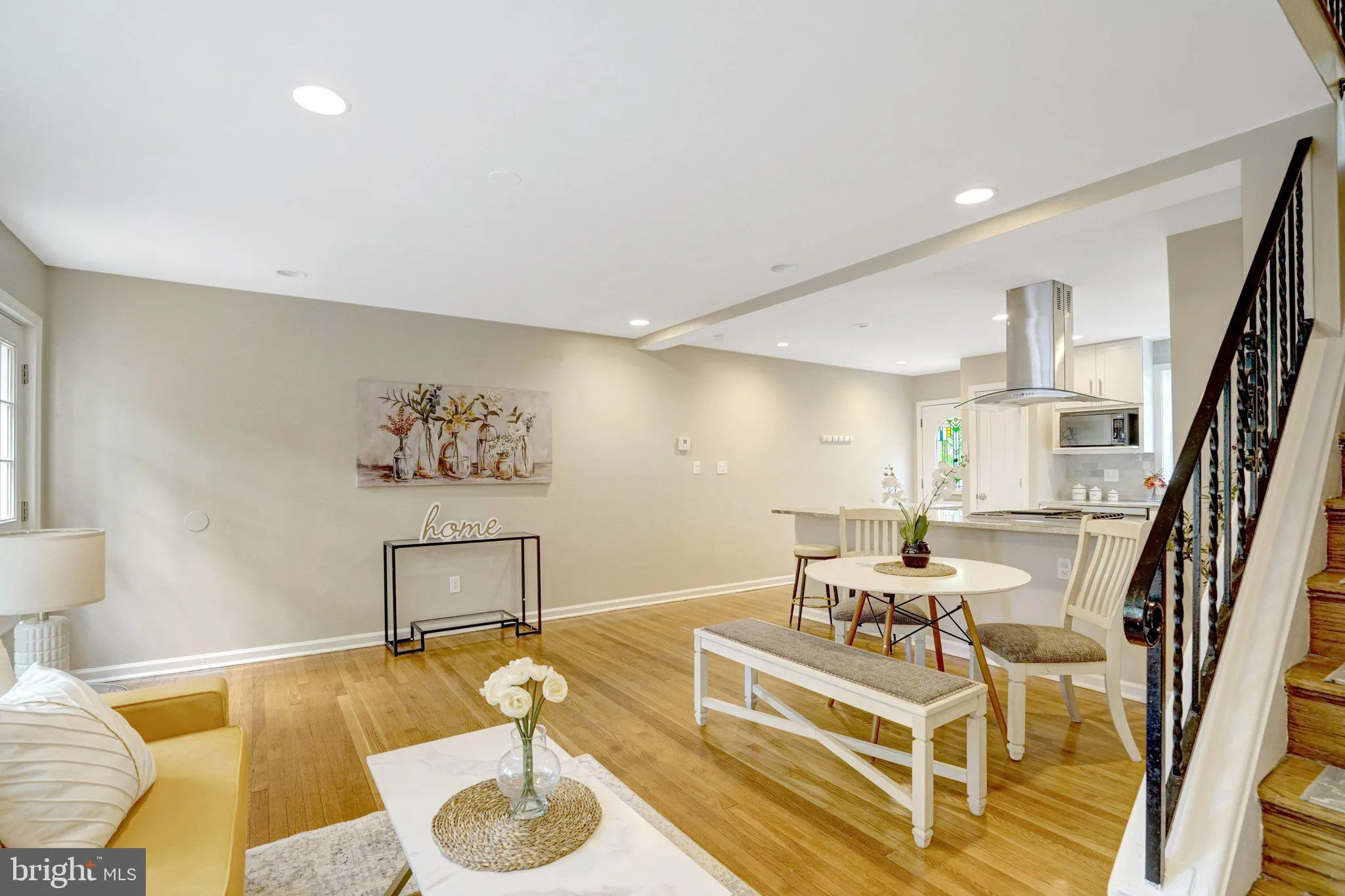 Charming and updated 3 level townhome in Warwick Village. Open concept main level. Kitchen with quartzite counters and marble backsplash, 6 burner oven, and stainless appliances. Hardwood floors on main and upper levels. Recessed lighting throughout the home. Walk out to fenced yard with stone patio with cedar flower wall – a great entertaining space. 3 BRs with a full bath upstairs. Basement has huge rec room that is the ultimate flex space – a home office, guest suite, or exercise room and has another full bath, laundry and large storage closet. Walk to Del Ray shops and restaurants, or the Birchmere. Short commute to Amazon HQ2, Pentagon, or DC. ***2.75% assumable VA loan***