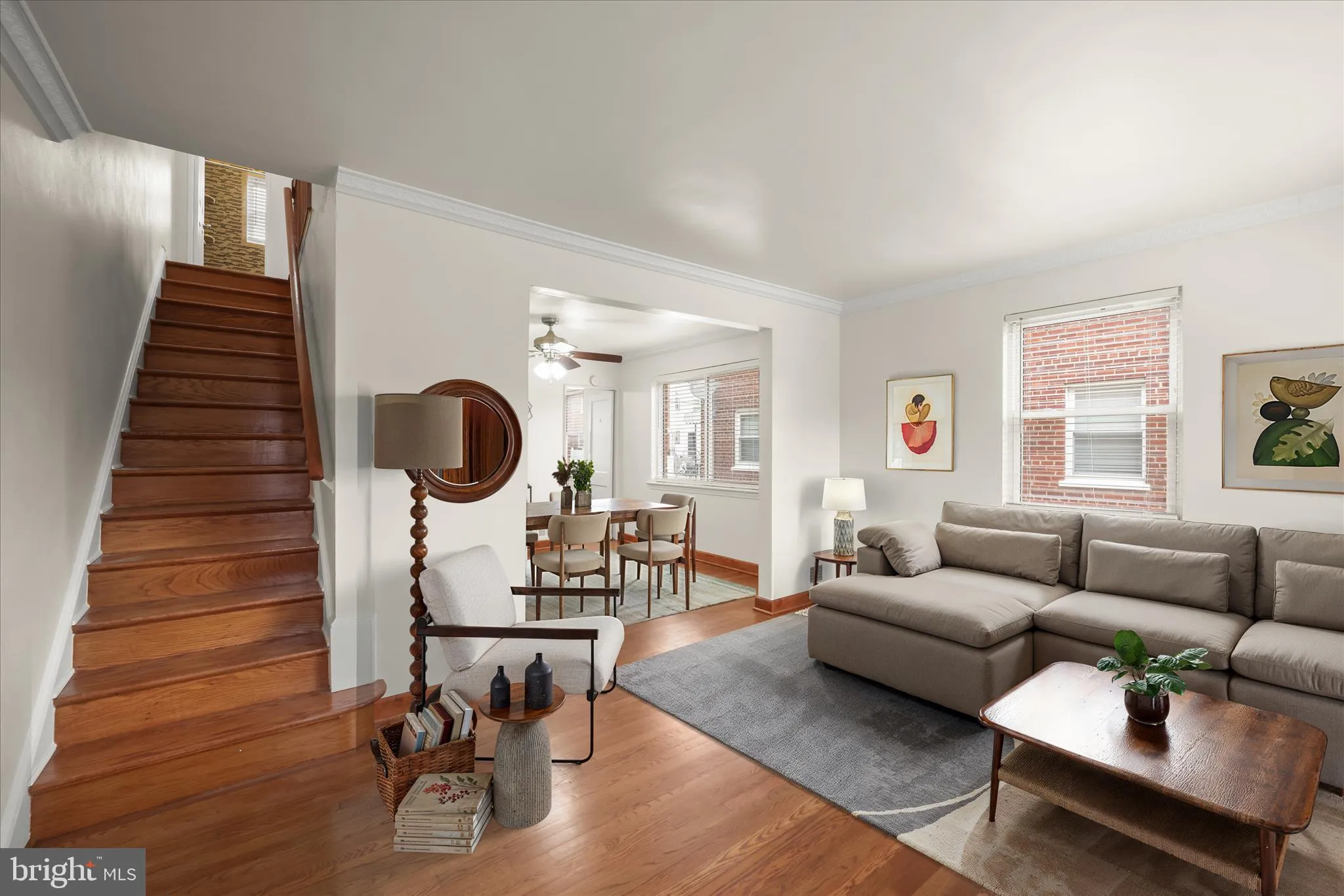Discover this beautifully updated all-brick semi-detached end-unit residence, ideally positioned in the heart of Congress Heights. Blending timeless character with modern upgrades, this home offers both style and functionality across three finished levels. The exterior sets the tone with fully fenced side and rear yards, enhanced by lush Zoysia grass, creating a private, serene outdoor retreat perfect for relaxing or entertaining. Inside, sun-filled interiors highlight refinished hardwood flooring, a neutral designer palette, updated lighting, and multiple ceiling fans throughout. The main level features a spacious living room and a separate dining room, both adorned with elegant crown molding, offering an ideal setting for everyday living and formal gatherings. The updated kitchen is thoughtfully designed with vinyl plank flooring, granite countertops, a tile backsplash, and stainless steel appliances, with direct access to the backyard for seamless indoor-outdoor entertaining. Upstairs, three generously sized bedrooms provide comfortable accommodations, each equipped with ceiling fans. The full bath has been tastefully renovated, showcasing a mosaic tile shower surround with a striking accent wall. The finished lower level expands the living space with a versatile family room featuring recessed lighting, a walk-in closet, and walk-up access to the backyard. A second full bath and dedicated laundry room add convenience and flexibility to the layout. Ideally located near a community center, shopping, National Harbor, Bolling Air Force Base, and major commuter routes, including I-295 and I-495, this home offers exceptional accessibility to all that Washington, D.C. has to offer. Extensive updates include kitchen appliances, water heater, granite surfaces, refinished hardwood floors, renovated baths, updated lighting, new kitchen and lower-level flooring, front and rear doors, lower-level security door, landscaping, and more, making this move-in-ready home a standout opportunity.