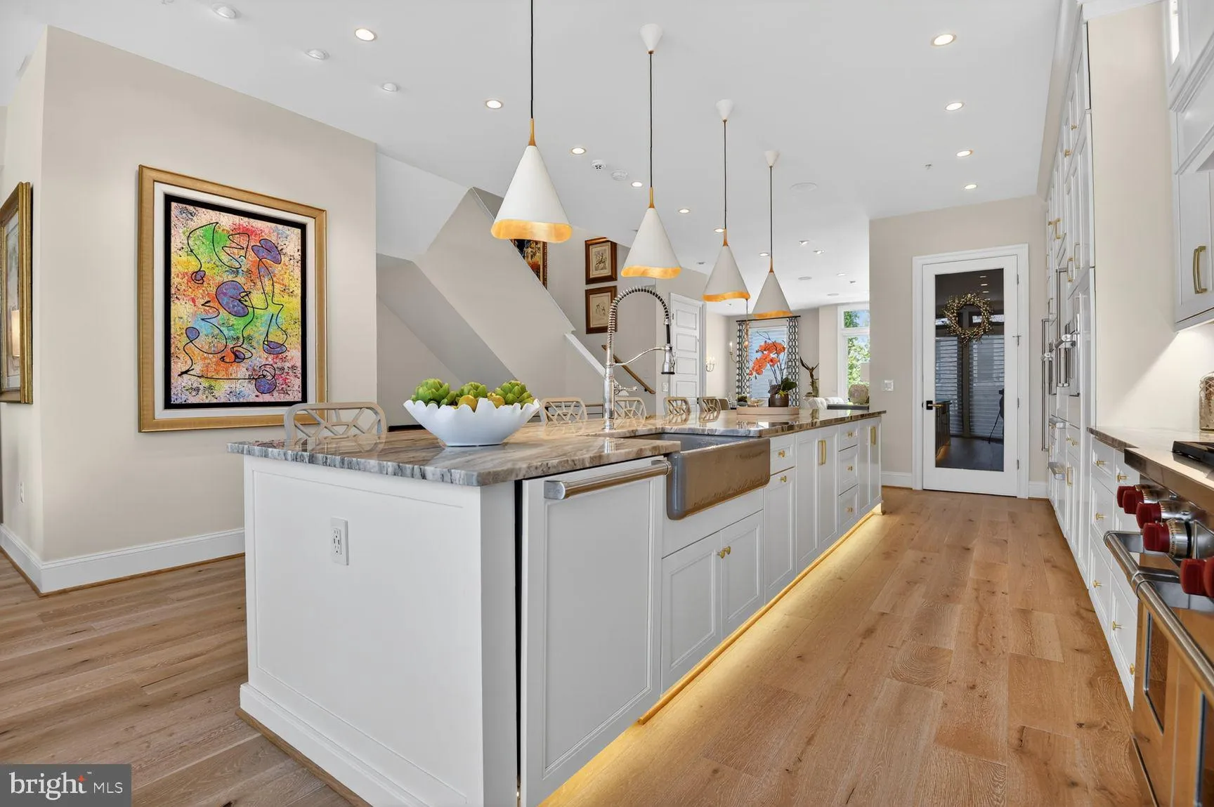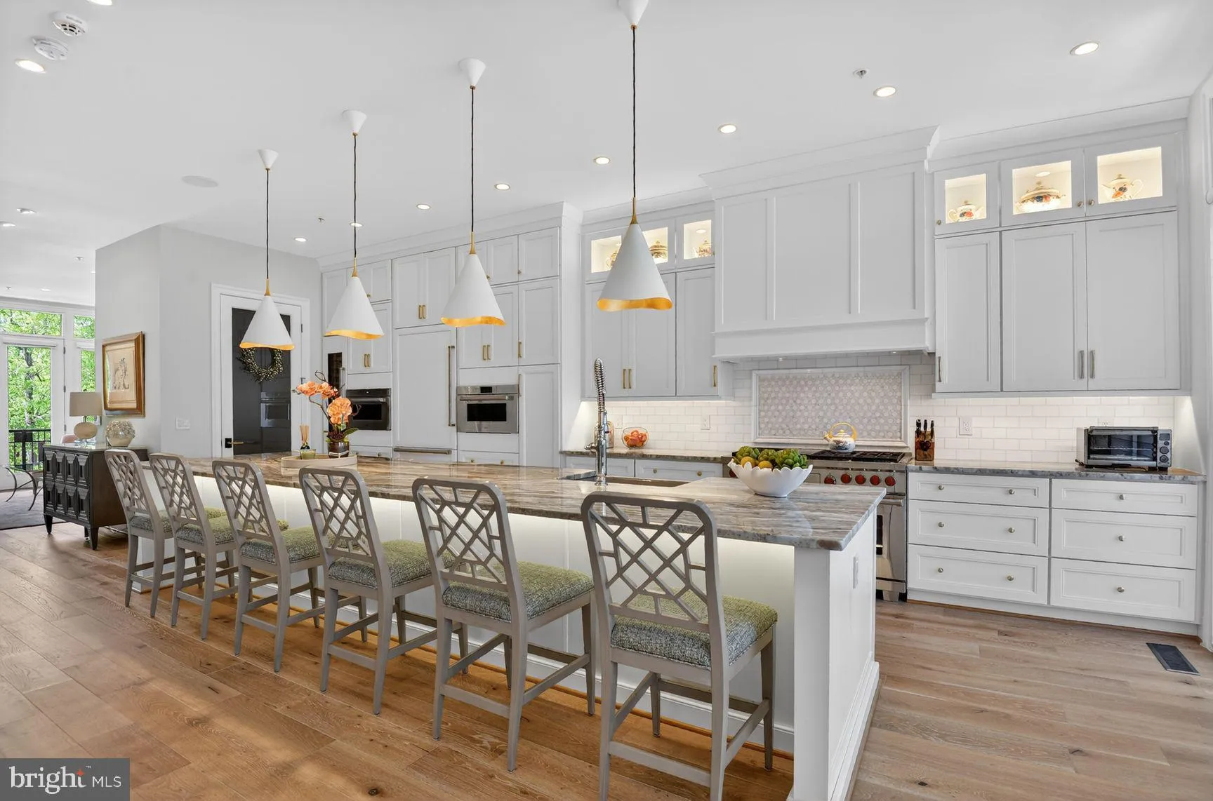 Second Level (Main Living):The main level is a true showpiece, anchored by a stunning central kitchen that rivals the finest custom homes, no upgrade was spared. Featuring an oversized island, premium Wolf and Sub-Zero appliances including a six-burner double oven range, convection steam oven, dedicated wine tower, this space is as functional as it is striking. High end cabinets with in-cabinet lighting as well as under-cabinet lighting and custom backsplash round out the stunning kitchen. At the front of the home, the sunlit dining and family rooms overlook One Loudoun’s Central Park. Step out on the Juliet balcony to enjoy the views and open feel, the fireplace is flanked by floating shelves. In the rear, a warm and inviting hearth room with a gas fireplace provides a more intimate gathering space and opens directly to a private deck.