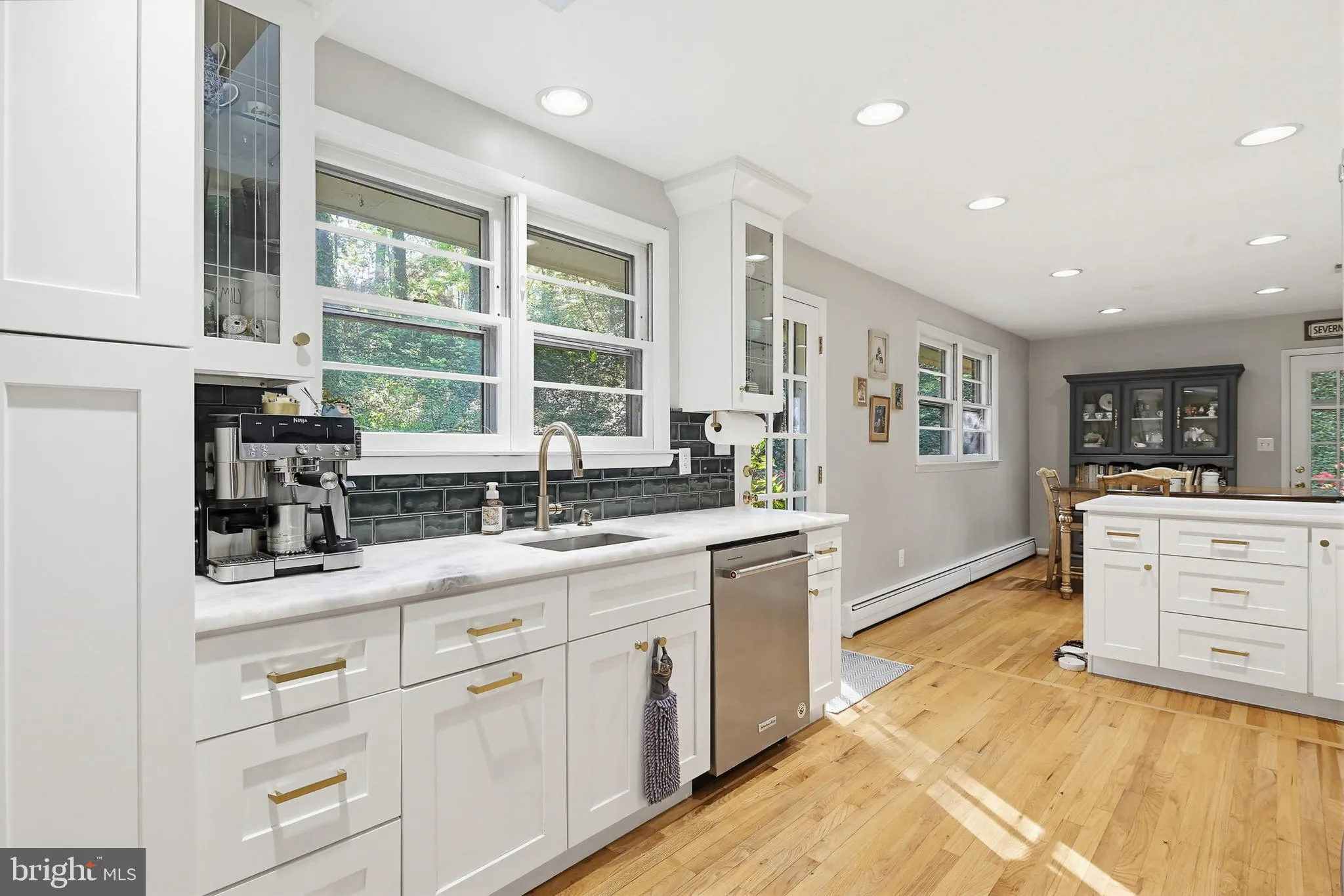 Nestled in the coveted Ben Oaks on the Severn community, this exquisite 4-bedroom, 3-bathroom residence blends modern luxury with timeless charm. Set on a generous 1/2-acre lot, the property backs to tranquil trees, offering a peaceful retreat—whether on the screened porch, the patio, or in the hot tub—while being only steps away from the Severn River. Inside, you’ll find the recently renovated kitchen, featuring white shaker cabinets, stainless appliances, and breathtaking natural quartzite counters. Hardwood floors flow throughout the main level, from the living room—with its wood-burning fireplace and bow window offering partial waterviews—to the 4 generous upper level bedrooms and 2 full baths. The light-filled lower level features a large family room, office, full bath, and a direct entrance from the driveway, leaving open the possibility for a future ADU conversion. New architechtural shingle roof (2021).