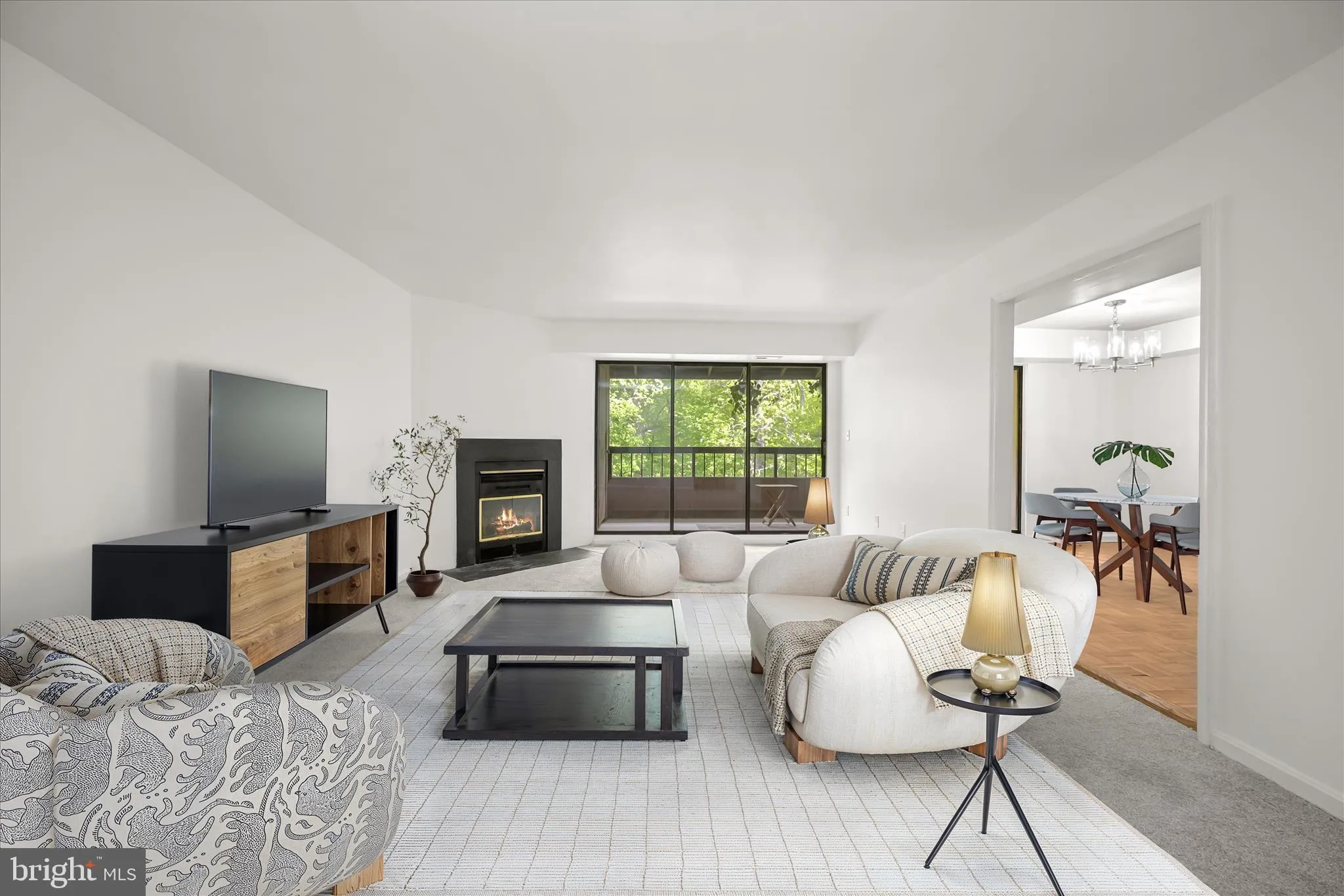 Nestled in the heart of Columbia, this spacious top-level condo offers the perfect blend of modern style and natural serenity. Thoughtfully renovated, the two-bedroom, two-bath layout is filled with natural light, as large windows and multiple sliding glass doors frame lush, green views from nearly every room. The inviting living room is anchored by a cozy fireplace and opens to a private balcony, creating a seamless indoor-outdoor flow. The renovated eat-in kitchen is equally impressive, featuring crisp white cabinetry, quartz countertops, sleek appliances, and a breakfast bar, along with a dining area that provides additional access to the balcony an ideal setting for morning coffee or relaxed evening gatherings overlooking mature trees and expansive community green space.