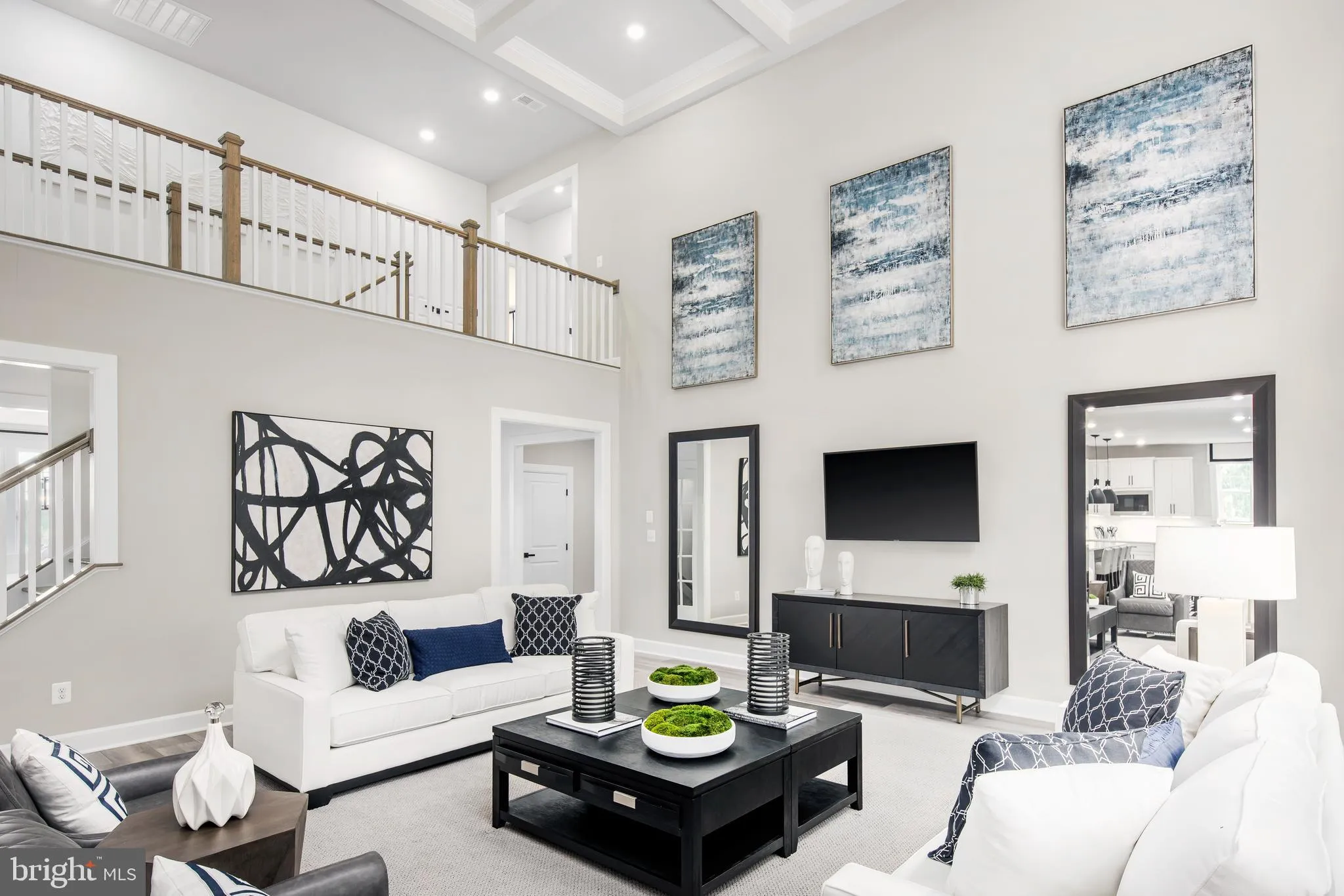 NVHomes at Two Rivers for ALL Ages. The Santorini design is a stunning 2-car garage single-family home defined by luxury design. The grand foyer is framed on either side by a formal dining room and versatile flex space. A tucked away study makes working from home easy. The gourmet kitchen includes an island and overlooks the 2-story family room and dining area. Enjoy outdoor living on the optional covered porch. Upstairs, 3 bedrooms include en-suite baths and walk-in closets. The luxury owner’s suite features 2 enormous walk-in closets and a spa-like dual vanity bath. Options in this home are comparable to those shown in our onsite Santorini model.Photos are for viewing only – taken at a model. Contact Sales Office for more information.