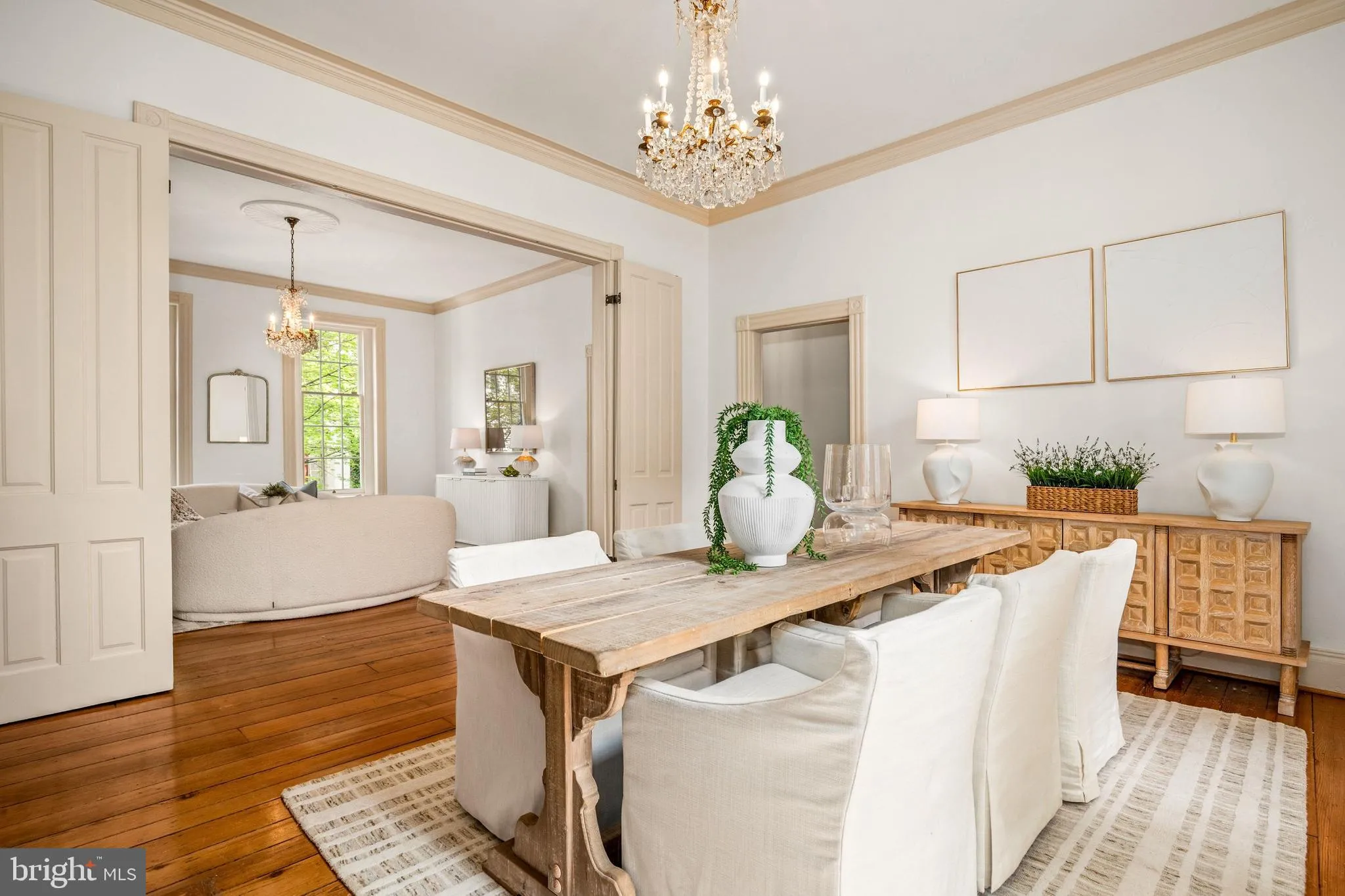 Nestled on one of the most sought-after blocks in Georgetown’s West Village, 3316 N Street NW is a classic flat-front Federal residence that captures the essence of historic Georgetown living: grand in proportion, rich in history, and defined by timeless architectural detail. Featuring 5 Bedrooms, 4.5 Baths, and 7 Fireplaces throughout, complete with 1-Car Rear Parking. Thoughtfully updated to turnkey perfection, the home preserves its original character while seamlessly incorporating modern comforts. Believed to date to circa 1817–1818, the residence reflects a storied lineage tied to early Georgetown families, including John Cox, William Wilson Corcoran, and the Marbury family of Marbury v. Madison fame. Its architectural evolution is evident in the seamless layering of its Federal origins with a later Victorian addition, all carefully preserved and enhanced over time. From the tree-shaded block of N Street, the home is introduced by a sweeping staircase with a classic wrought iron railing. Inside, the main level is defined by original floors, high ceilings, and beautiful natural light from both northern and southern exposures. A gracious vestibule and foyer open to formal living and dining rooms, divided by original bi-fold doors and anchored by twin hand-carved French fireplaces, with Baccarat chandeliers adding a refined touch. A discreet powder room completes this level. The renovated kitchen blends modern function with historic charm, featuring its own fireplace, a Wolf six-burner range, and Miele appliances. It connects to a side entrance that opens directly to a private rear patio surrounded by a mature garden. The rear gate provides access to secure one-car parking beyond, ideal for effortless daily living. Upstairs, the primary suite offers a striking fireplace with a hand-carved French mantel, twin closets, and a light-filled bath with a walk-in shower. A guest room or den showcases a Federal mantel and antique fire-back, while a third bedroom in the Victorian addition enjoys southwest light, a fireplace, and built-ins. The top floor provides flexible bonus space, featuring dormer windows with both northern and southern exposures, and a full bath with a shower/tub. Enjoying its own front street entrance, and rarely situated above grade, the lower level is something special, featuring exposed beams, custom millwork, fireplace, and built-ins all highlighted by professional lighting. The space is perfect for a library or study, completing the level you will find wine storage, laundry, and space for a gym or the perfect guest suite with its own rear entrance! Complete with rear parking with direct access, this is a truly exceptional Georgetown offering on one of the neighborhood’s best blocks!