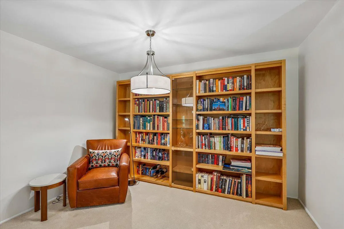 The primary bedroom is generously sized with two closets plus a walk-in, while the second bedroom offers flexibility as an office, den, or guest space. A bright breakfast area with walls of windows creates the perfect spot to start your day, surrounded by greenery.