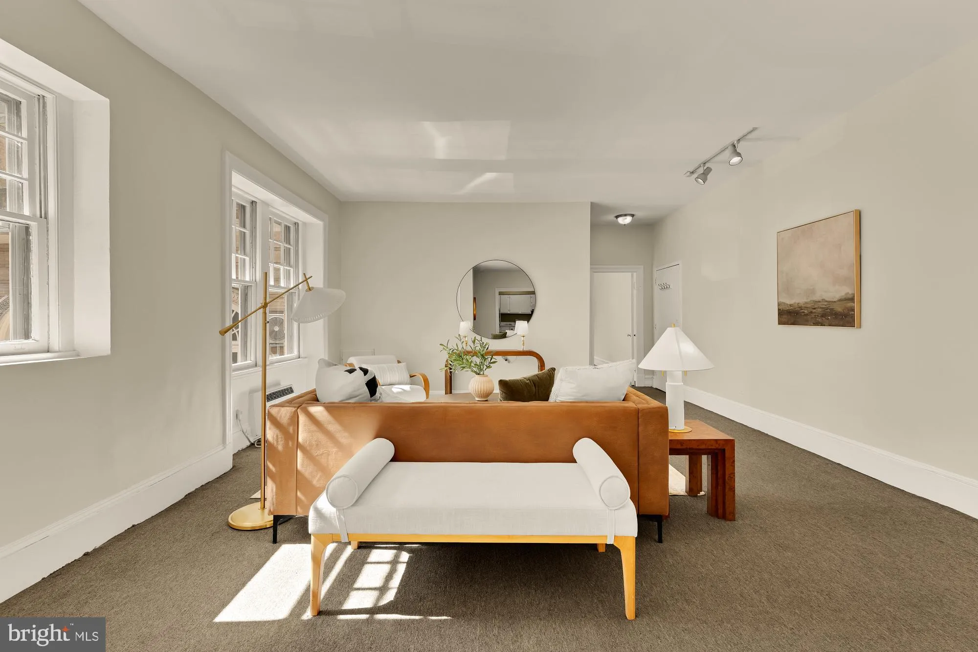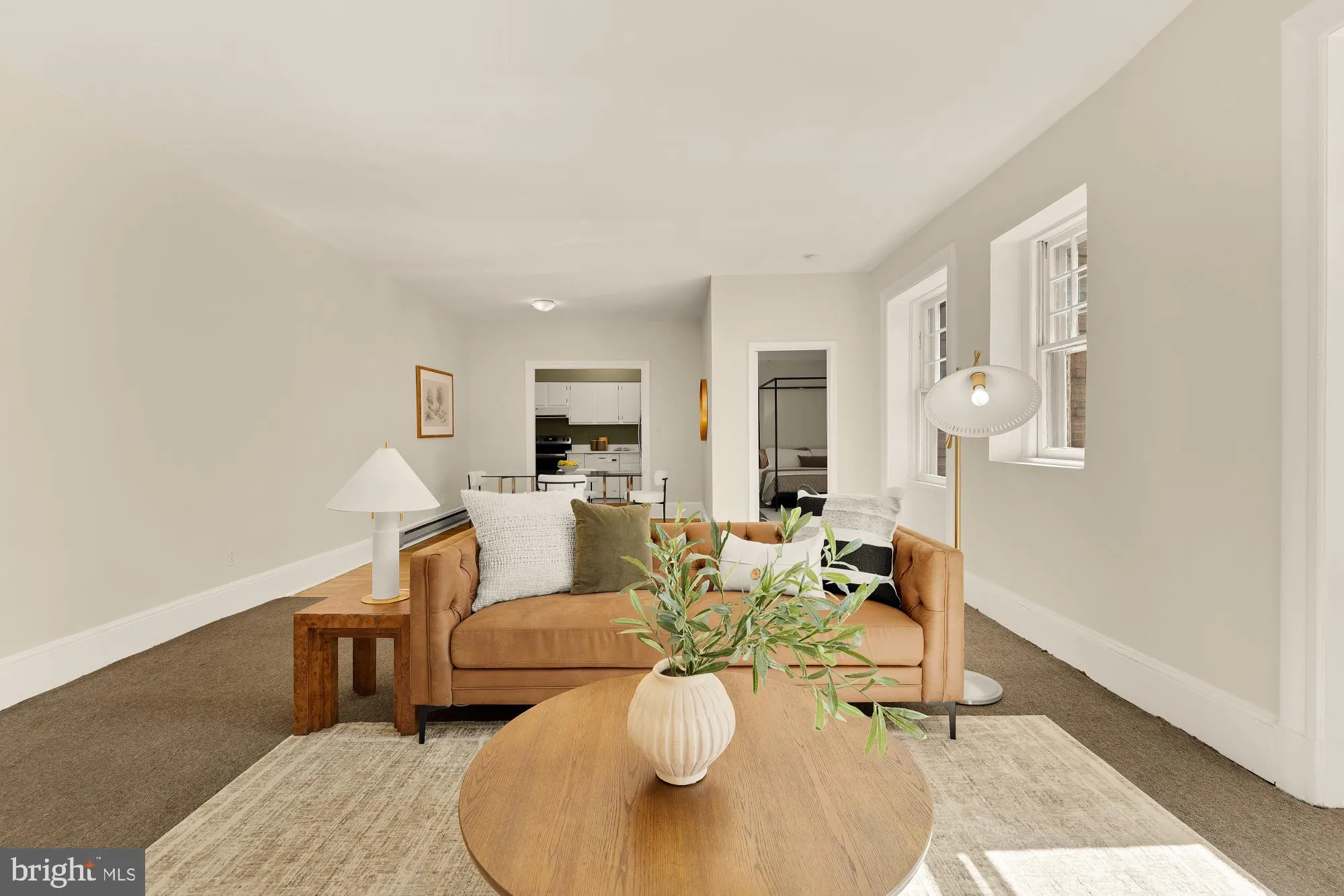 A welcoming entry opens to a sun-drenched main living space, where expansive windows and an open layout create a seamless flow for both everyday living and entertaining. The adjoining kitchen, featuring new quartz counters, is efficiently designed and open to the living and dining areas—ideal for casual meals or hosting with ease.