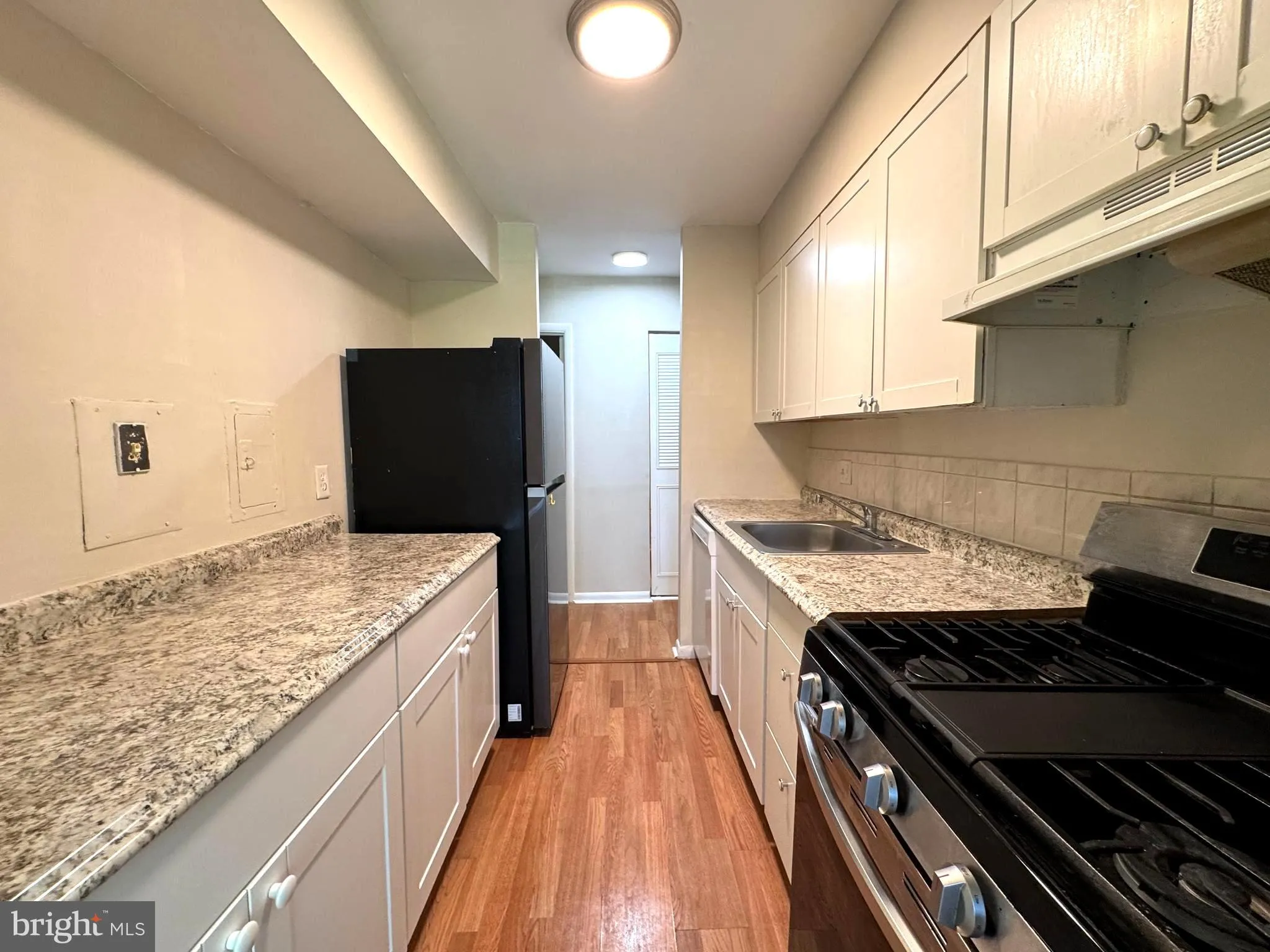 Updated Bathroom. Top-level, 2-bedroom condo, newly updated throughout with newer kitchen cabinets (2023), countertop (2023), newer gas range and hood (2023), newer dishwasher92023), engineered wood flooring, and new paint. It features a separate dining room, living room, and private balcony. The Master bedroom has a walk-in closet. Just steps from Fairfax Hospital – minutes from I-495, I-66, and Tysons Corner. Convenient to the bus and metro. Woodburn Village is a garden community with great common grounds, picnic areas, sports courts, and an outdoor pool. The office is right off the pool club house. The condo fee includes all utilities. Laundry Room and storage bin in the basement.