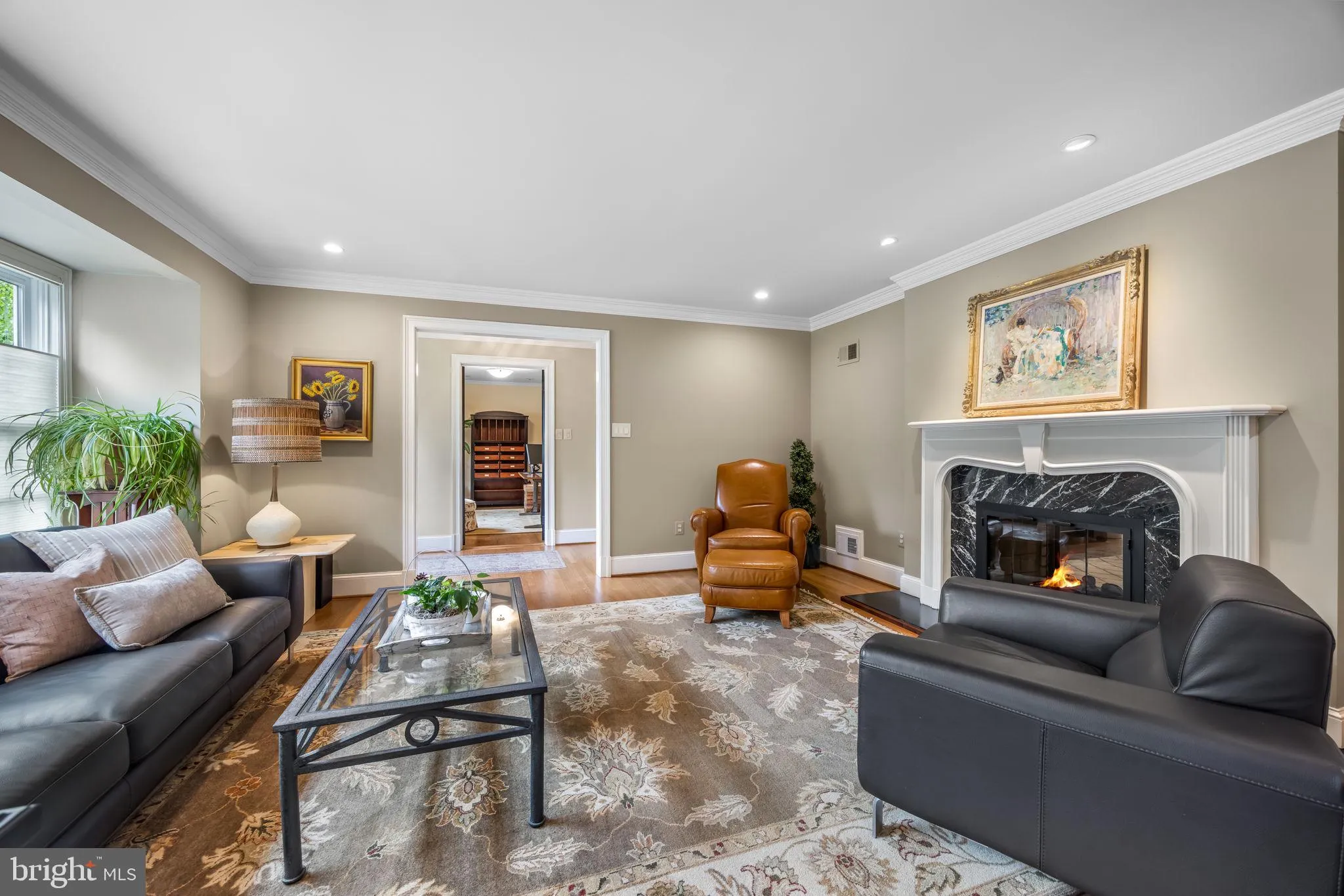 The upper-level features four generously sized bedrooms with updated bathrooms and a luxurious primary suite complete with a sitting room, a large walk-in closet with separate sides, and spa-inspired bath with soaking tub, two sinks and a steamy shower.