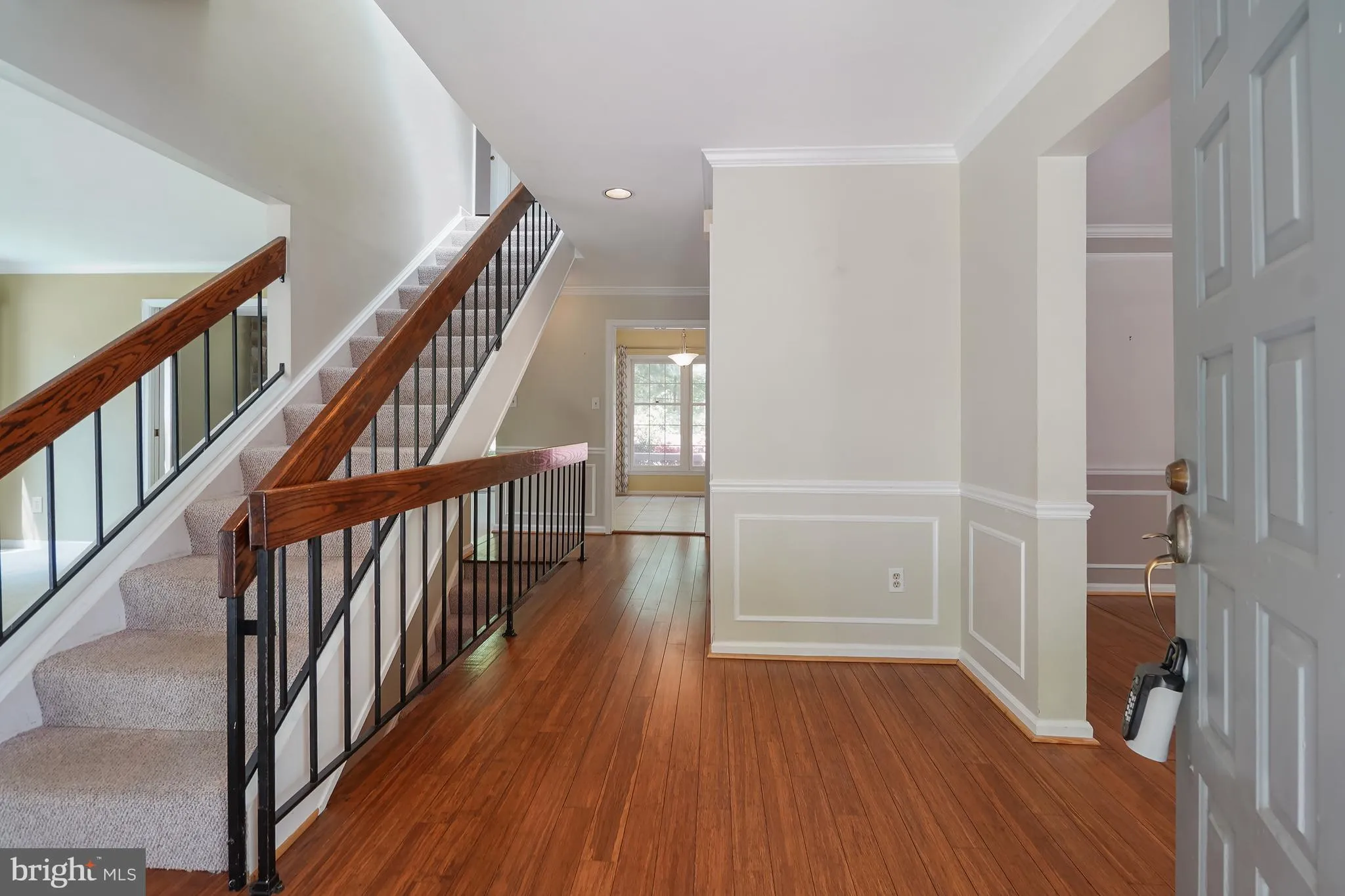 A welcoming front porch leads into the foyer with gleaming wood flooring and flanked by formal living and dining rooms. The light-filled living room showcases large windows, while the spacious dining room offers elegant molding details and ample table space for entertaining. The upgraded eat-in kitchen is complete with granite countertops, stainless steel appliances including a double wall oven, center island, and abundant cabinetry. Just off the breakfast area, step out onto the expansive rear deck overlooking the lush backyard oasis with pool and hot tub below.