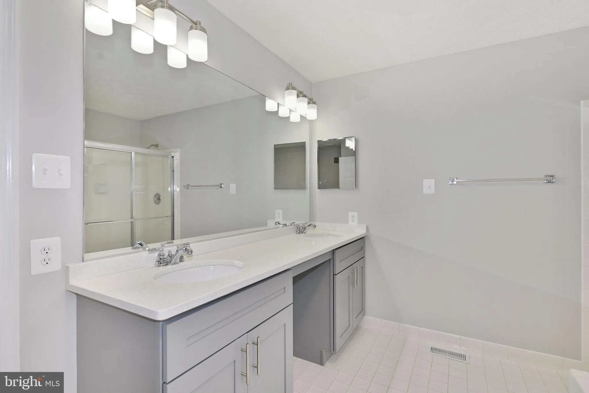 The property features extensive upgrades, including new flooring across all three levels, light fixtures , fully renovated kitchen with new cabinetry and quartz countertops, new vanities with granite countertops in all four bathrooms and granite countertops, new HVAC system, new garage doors and new openers, french doors leading to a three-tiered deck overlooking the woods.