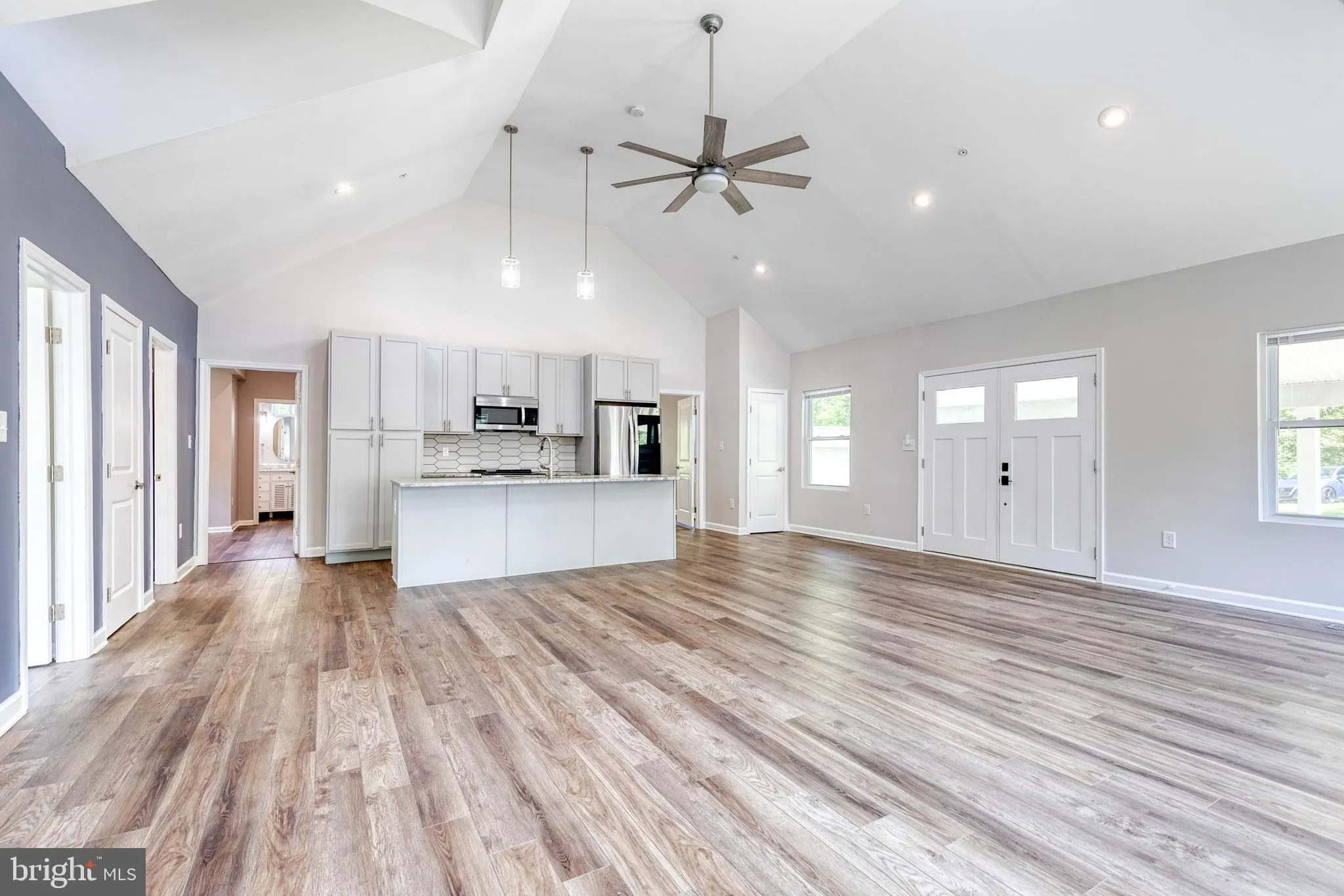 Beautifully remodeled cottage tucked away in a private setting, just a short walk to the local elementary school. This chic home features gorgeous finishes and an open-concept layout with vaulted ceilings, creating a bright and airy feel throughout. The gourmet kitchen is a standout, complete with a spacious island, granite countertops, stainless steel appliances, and a classic subway tile backsplash which is open to the huge great room. Sleek hardwood floors run throughout the home, complemented by stylish designer colors.