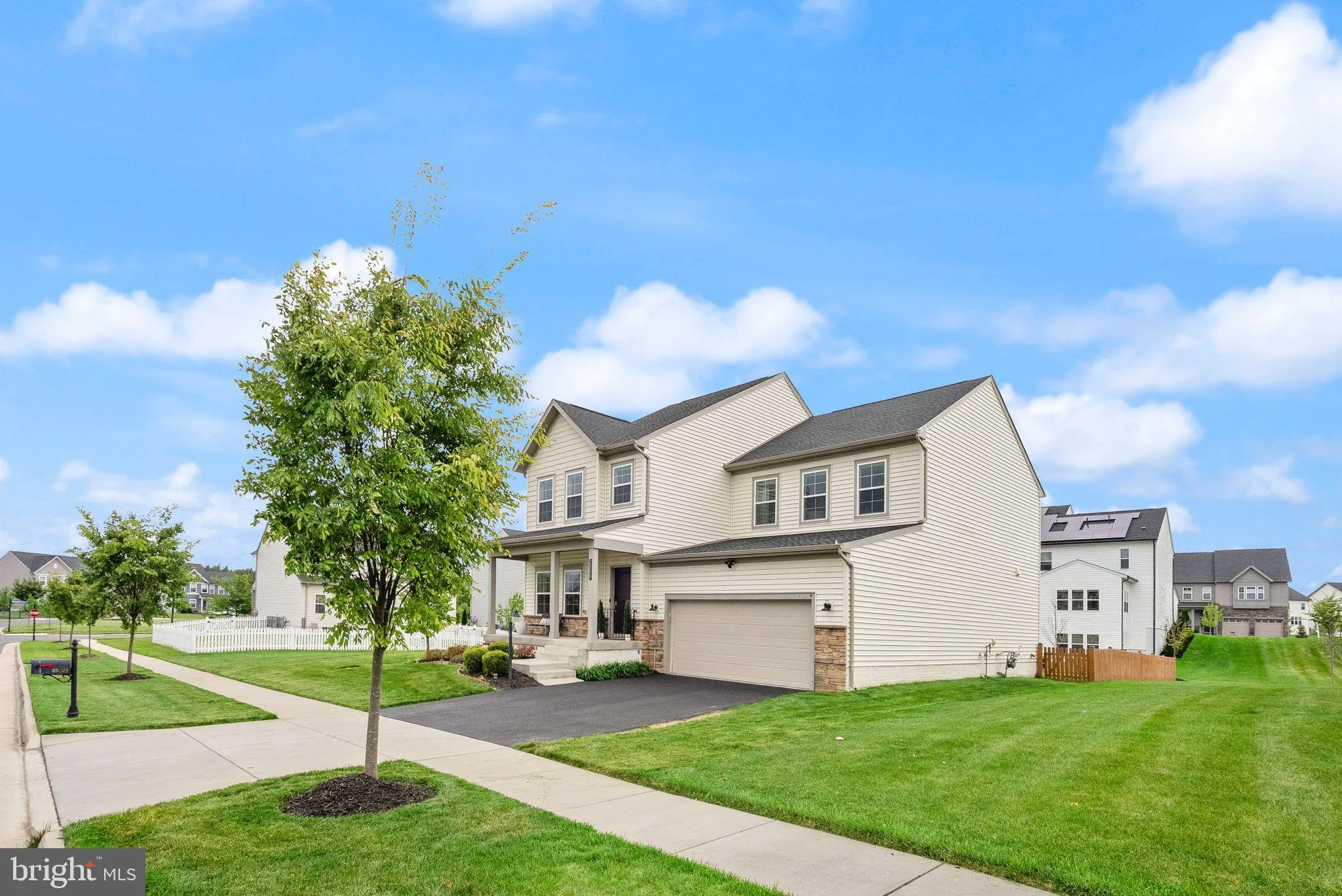 Welcome to this beautiful home in the sought-after Lenah Mill community! Built by Toll Brothers in 2020, this fantastic single family home is nestled on a spacious EAST-facing lot in one of Loudoun County’s finest neighborhoods and comes with a major bonus – PAID OFF solar panels! As you arrive you’ll be immediately notice the home’s striking curb appeal and fresh landscaping! Entering through the front door, you’ll quickly start seeing how much this main level has to offer. Enjoy a well-lit and spacious formal sitting/reading/recreation room near the front of the house that could easily be converted to an office if desired! The star of this level is the openness and design of the kitchen, eat-in dining space, and main living area. Let’s start with the kitchen – WOW! It’s fully loaded as you’ve got gorgeous pewter cabinetry with brass hardware, light quartz countertops with so much counter space, a full pantry, and upgraded stainless steel appliances. This flows right into the eat-in space that offers plenty of room for any size table very comfortably! The main living area is just steps away as well and benefits from so much natural light coming in from the wall of windows, and boasts plenty of space for your furniture. You’ve also got a mudroom space right off the kitchen that you’ll enter from your two-car garage, and a quaint half bathroom completes the main level! Upstairs you’ll find 4 large bedrooms and 2 full bathrooms, including a primary suite with so much space, plenty of natural light, a deep walk-in closet, and a primary bathroom that checks all of the boxes. The other 3 bedrooms on the upper level are birds of a feather – LVP flooring throughout, plenty big with nice closet space, including a walk-in closet on the largest one! You’ll also enjoy a full laundry room with a sink upstairs, which is a must-have. Downstairs you’ll find a lovely basement offering so much space and options – easily use half as a 5th bedroom, office, theater, home gym, recreation space, or anything else you can think of! The basement is also home to a full bathroom, as well as a fantastic oversized storage closet, and an absolutely adorable hideaway/play nook under the stairs! It could also be another storage option – again, so many choices! Out back you’ll find a perfect backyard – flat, low maintenance, fenced-in, and an ideal layout for hardscaping! There’s additional yard space outside the fence to the left of the home as well – almost double the total yard space that many neighbors have! UPGRADES – paid-off solar panel system, yard irrigation system, reverse osmosis water purification system with water softener, and fresh paint touchups! Lastly, enjoy the amenity rich neighborhood of Lenah Mill that includes a fitness center, swimming pool, splash pad, clubhouse, zip line, tot lots, playing fields, dog park, sports courts, Boathouse Lake, and more! The icing on the cake is the location – you’re just a short drive from Loudoun County hot spots like the Brambleton Town Center, Hal & Bernie Park, Dulles Landing (Target & Walmart), and so much more. This home truly checks all of the boxes to make sure you come see this one for yourself!