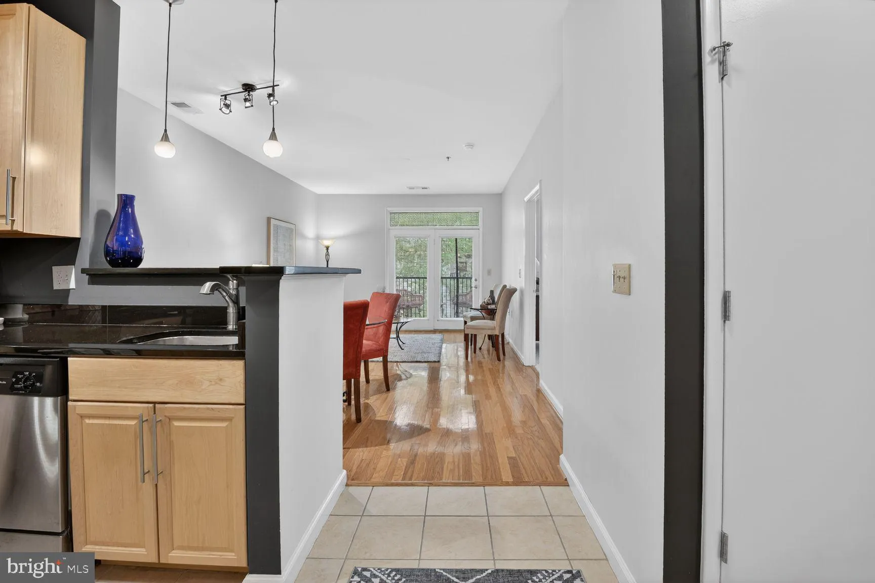 Enjoy upscale urban living at the Silverton Condominium in Downtown Silver Spring. This top floor condo features a spacious floor plan with a private balcony overlooking a verdant courtyard. The open kitchen, perfect for culinary enthusiasts, is equipped with granite countertops, stainless steel appliances, and a breakfast bar. The large bedroom has a sizable walk-in closet as well as an additional closet, and a full-sized washer and dryer are also inside the unit. Enjoy the convenience of your garage parking space and the proximity to the metro, just a block and a half away.
